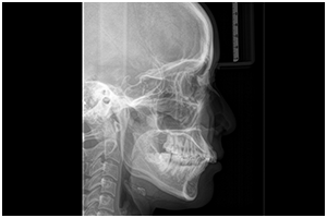 頭や顎の骨格のバランス、前歯の角度、噛み合わせの状態などを調べるための頭部のレントゲン写真です。