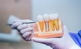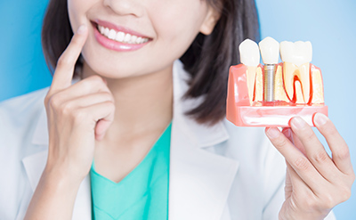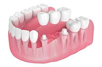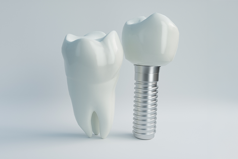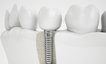体内にものを埋め込むことをインプラントと言い、歯科領域では主に人工歯根(インプラント体)を顎骨に埋めて歯の代わりにすることを指します。歯を失ってしまった場合、入れ歯やブリッジの他にインプラントで噛む機能を再現させる選択肢があります。審美性や機能性が高く、残存歯に負担がかかりにくいメリットがある方法です。