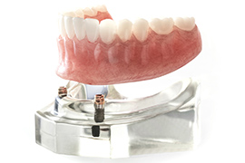 顎骨にインプラント体を埋め込んで土台とし、入れ歯を固定する方法です。インプラントオーバーデンチャーはご自身で入れ歯を取り外せるため、管理がしやすい点がメリットとしてあげられます。一般的な総入れ歯の大きさよりも小さい点も、インプラントオーバーデンチャーの特徴です。