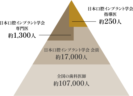日本口腔インプラント学会は、国内でも最大規模の歯科領域のインプラントに関する学会です。学会会員の中でも、一定の臨床経験と専門知識を持ち、学会が定める研修や試験を通過した歯科医師は専門医・指導医に認定されます。