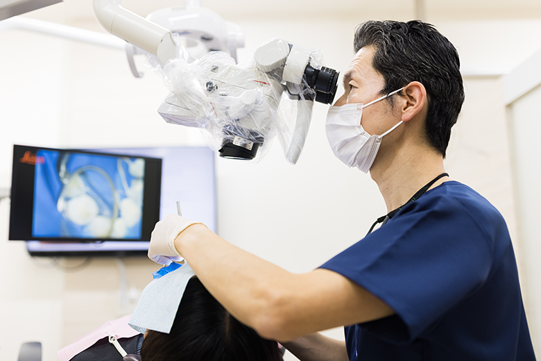 歯科用顕微鏡であり、視野を約20倍まで拡大することができます。治療時などに細かい処置をする際、肉眼では確認しにくい場合でも精度高く行えます。