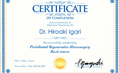 当院では、日本臨床歯周病学会歯周インプラント認定医が在籍しており、専門的な知識と技術をもとに歯周病に配慮したインプラント治療を提供しています。インプラント治療は、単に歯を失った部分に人工歯根を埋入するだけでなく、周囲の歯ぐきや骨の状態を的確に見極めた上で進めることが重要です。歯周病がある状態で治療を行うと、インプラントが長く機能しない場合もあります。当院では、歯周病の治療と管理を徹底し、インプラントの長期安定を目指した治療を行っています。