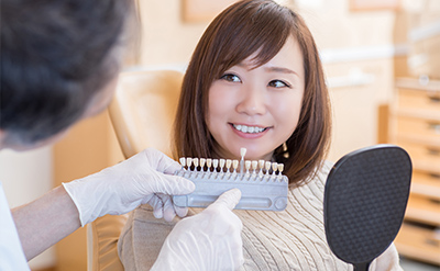 インプラント体に取り付ける人工歯は、セラミックやジルコニアなどの素材が用いられます。天然歯に近い、自然な質感を出すことができます。
